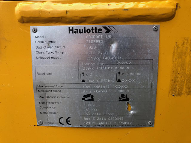 - Werkhoogte: 10 meter