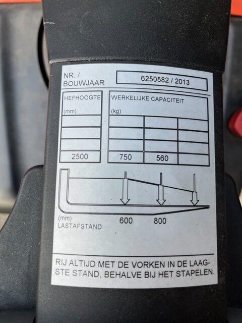 Deze machine is voor zien van een hydraulisch vorkversteller en wordt opnieuw gekeurd.