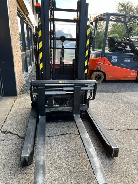 De combinatie van een compacte stapelaar en flexibele reachtruck, resulteert in een veelzijdige oplossing die geschikt is voor elk type pallet. Deze stapelaar met platform is uitermate geschikt voor gebruik in smalle gangen, waardoor opslagruimte en kosten worden bespaard
