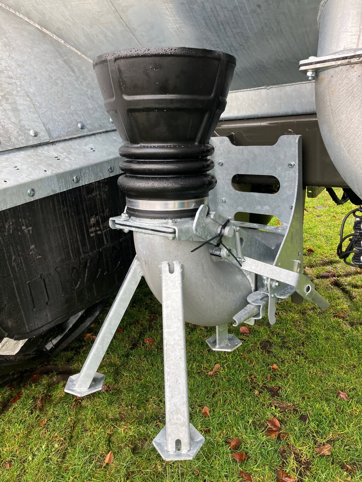 Trechter op statief met transportbevestiging aan chassis;