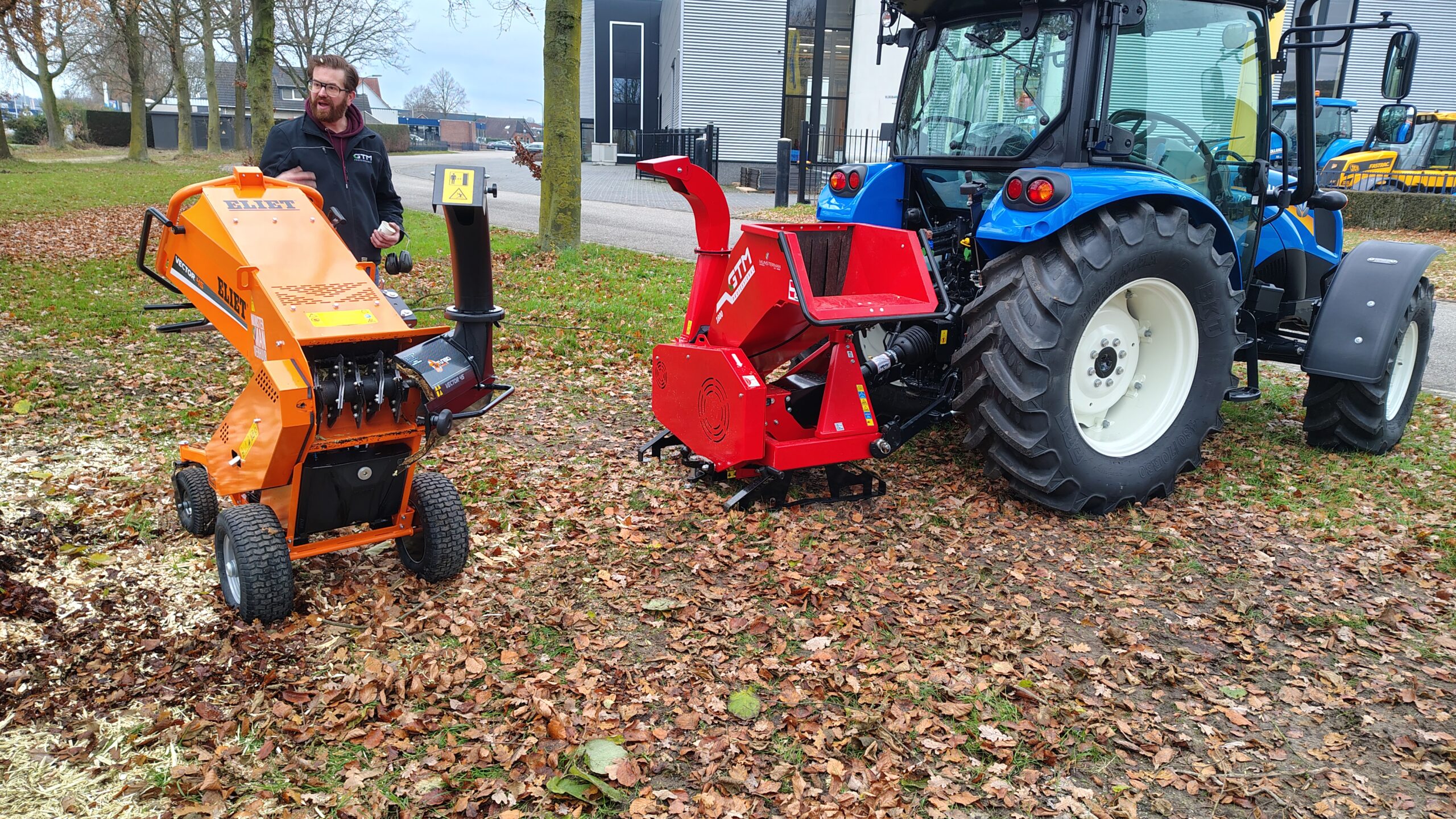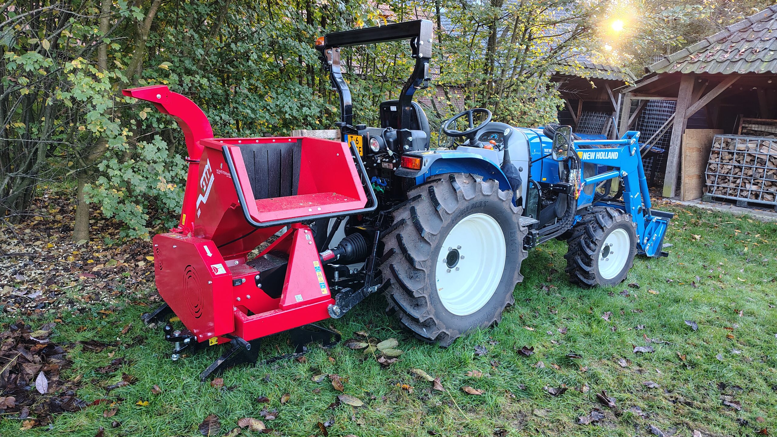 De 1800P is een krachtige en compacte houtversnipperaar die via de aftakas wordt aangesloten aan de PTO van alle merken tractoren tot maximaal 50 pk met Cat. 1 aansluiting. Dankzij de brede invoer en agressieve trekkracht kan deze machine takken tot wel 14 cm aan (droog hout tot 12 cm). Het versnippersysteem bestaat uit een metalen trommel (rotor) waarop twee PRO messen zijn gemonteerd. De fijne houtsnippers worden hoog uitgeworpen via de draaibare uitvoer met aanpasbare deflector. Er kan een aanhangwagen aan de achterkant van de machine worden bevestigd, waarin de houtsnippers direct afgevoerd kunnen worden. De 1800P voldoet aan de hoogste veiligheidseisen, waaronder de strenge bosbouwnorm (EN 13525:2020). Door het indrukken van de noodstop beugel wordt de aandrijving van de trommel mechanisch onderbroken en wordt deze afgeremd. Hier is geen elektrische verbinding met de tractor voor nodig. De veiligheid functioneert dus altijd onafhankelijk van eventuele voorziening op de tractor.