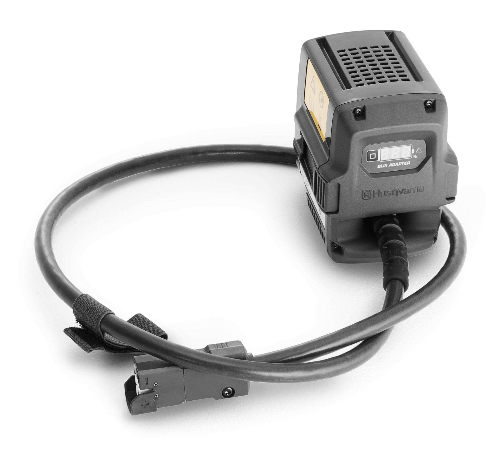 Husqvarna Accu-Adapter met kabel voor aan een Husqvarna accu rug pack of aan de Husqvarna BLi accuriem met connectorset. Geschikt voor de Husqvarna Rug Accu BLi520X BLi550x BLi940x BLi950x