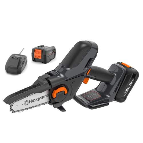 Deze compacte Husqvarna Aspire™ P5-P4A draagbare accu-snoeizaag, perfect voor het snoeien van bomen, het kappen van tuinafval en kleiner timmerwerk. Deze allround mini-snoeizaag is gebaseerd op onze bewezen expertise op het gebied van kettingzagen en is robuust genoeg om gemakkelijk takken van 75 mm breed te zagen. Uitgerust met een gemakkelijke en gereedschap loze vervanging van ketting en zaagblad en verbeterde veiligheid met een anti-slip handvat en automatische uitschakeling wanneer onbeheerd achtergelaten. Opbergen is gemakkelijk gemaakt met de meegeleverde haak en onderdeel van het 18V POWER FOR ALL-accusysteem.
